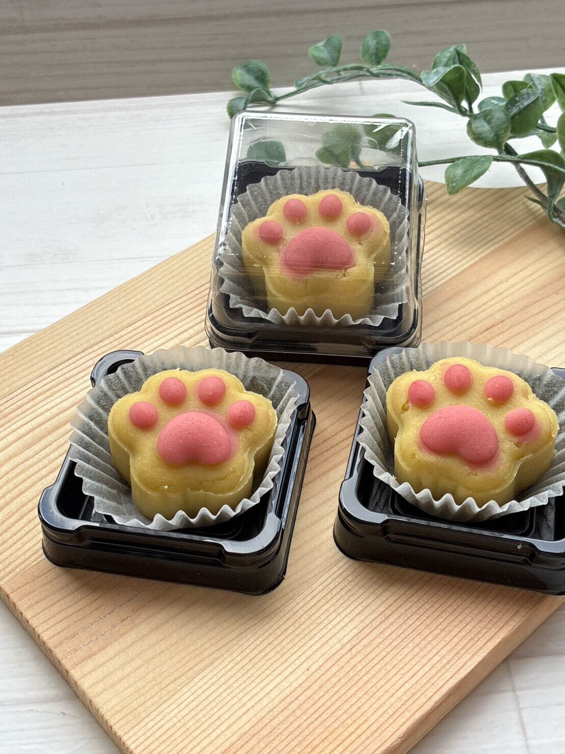 ワンちゃんの大好きなさつまいもで作った肉球型のおまんじゅう。